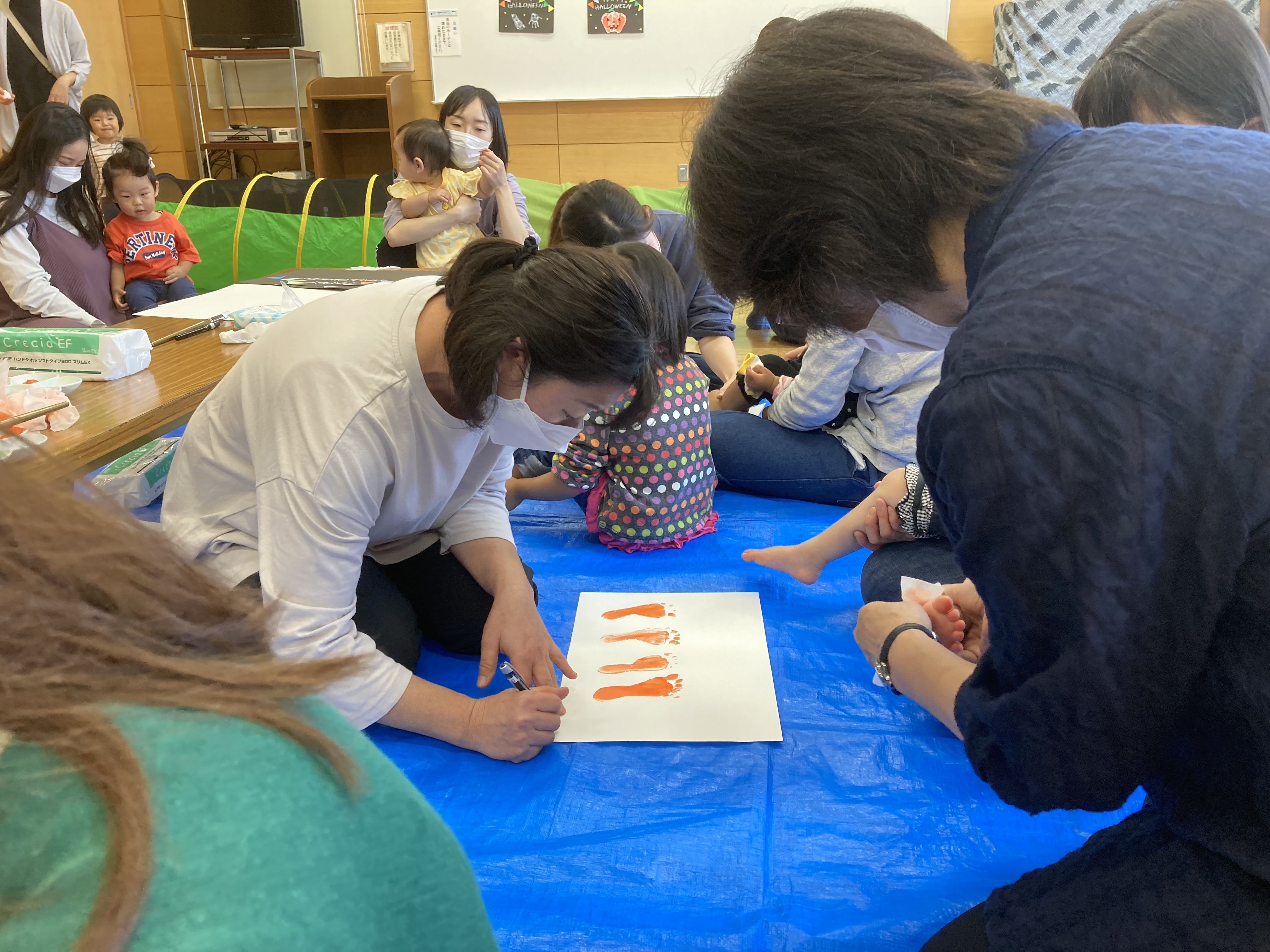 わらべ歌、手遊び、親子遊び、紙芝居などとても楽しいお話会でした。子どもたちも熱心に見入っていました。お楽しみのサプライズはお母さん方へのハンドマッサージでした。